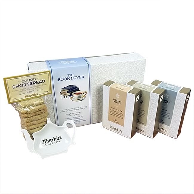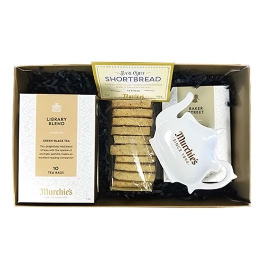 A 10 tea bag box of Editors' Blend; A 10 tea bag box of Library Blend; A 10 tea bag box of Baker Street Blend; 10 pieces of Earl Grey Shortbread; A Murchie's Tea Tidy