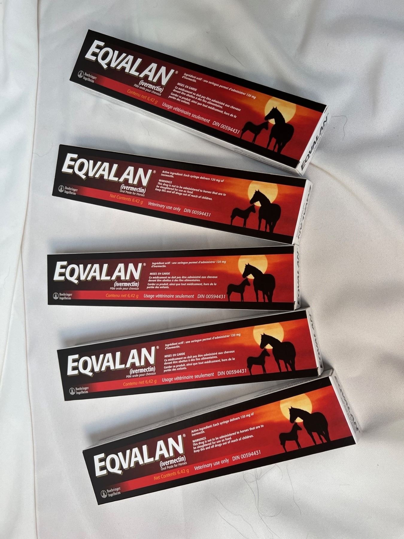 Five (5) syringes of Eqvalan Ivermectin Dewormer, 6.42 g.