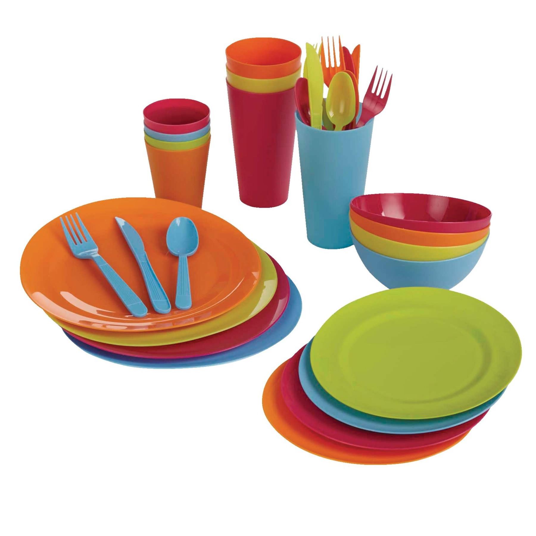 Master Chef 22” Portable Gas Griddle with three (3) canisters of propane and a 33-piece plastic dinnerware set