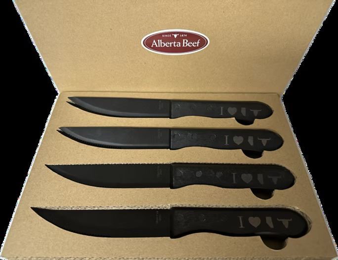 $50 Gift Certificate for The Butchery Block in Cochrane and a Set of four (4) hardened stainless steel 4 ¾" I Love Alberta Beef Steak Knives