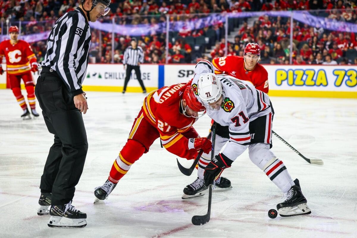 Four (4) sixth row, lower bowl premium tickets for the Flames vs. Blackhawks game at the Scotiabank Saddledome on November 7th, 2025