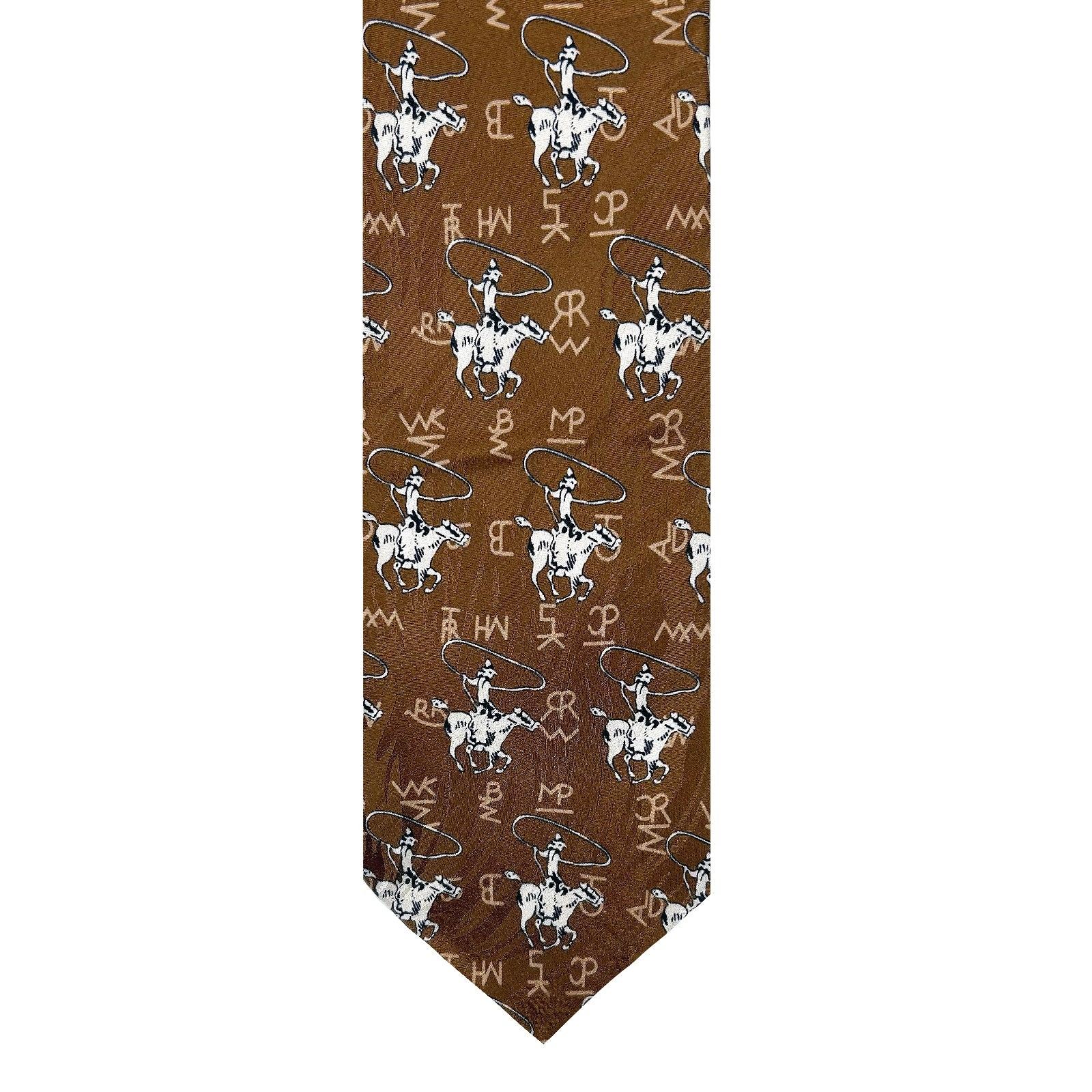 Silk Tie with cowboy and brands design by Rockmount Ranch Wear, Limited Edition No.226.